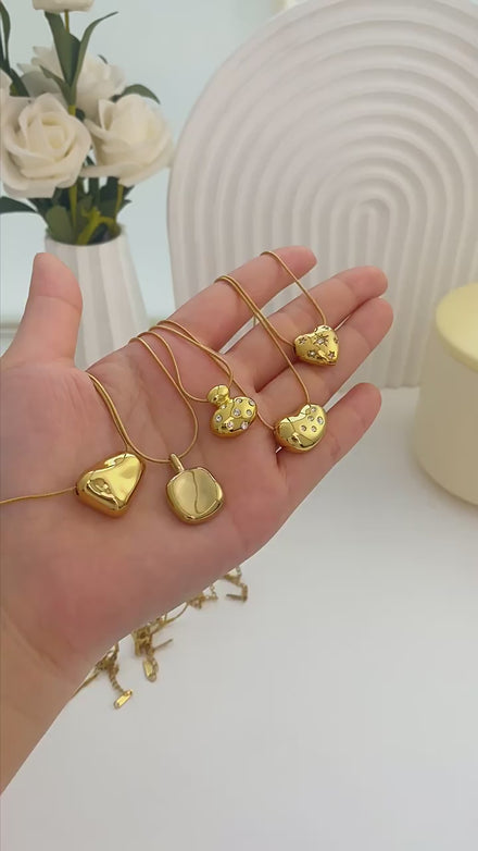 Illuminate your style with the Valora Gold Necklace. Featuring a polished golden square shaped pendant with a soft, sculptural finish, this piece embodies modern elegance with timeless charm. Perfect for layering or wearing solo, Valora adds a radiant glow to every look. Versatile, refined, and endlessly captivating.